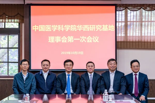 为贯彻落实党的十九大精神和习近平总书记“努力把beat365手机版官网建设成为我国医学科技创新体系的核心基地”的指示精神,加快构建开放型国家医学科技创新体系,2019年10月19日,beat365手机版官网华西研究基地理事会第一次会议在四川大学华西医院(以下简称华西医院)召开,beat365手机版官网王辰院校长、吴沛新书记、李青副院校长、王健伟副院校长,华西医院李为民院长、华西医院科技部王峥部长等理事出席了本次会议。四川大学华西医院万学红常务副院长、龚启勇副院长、沈彬副书记、黄进副院长,beat365手机版官网输血研究所刘嘉馨所长、陈勇军书记,院校科技管理处高百红副处长、刘海涛副处长等列席会议。会议由理事长王辰院校长主持。