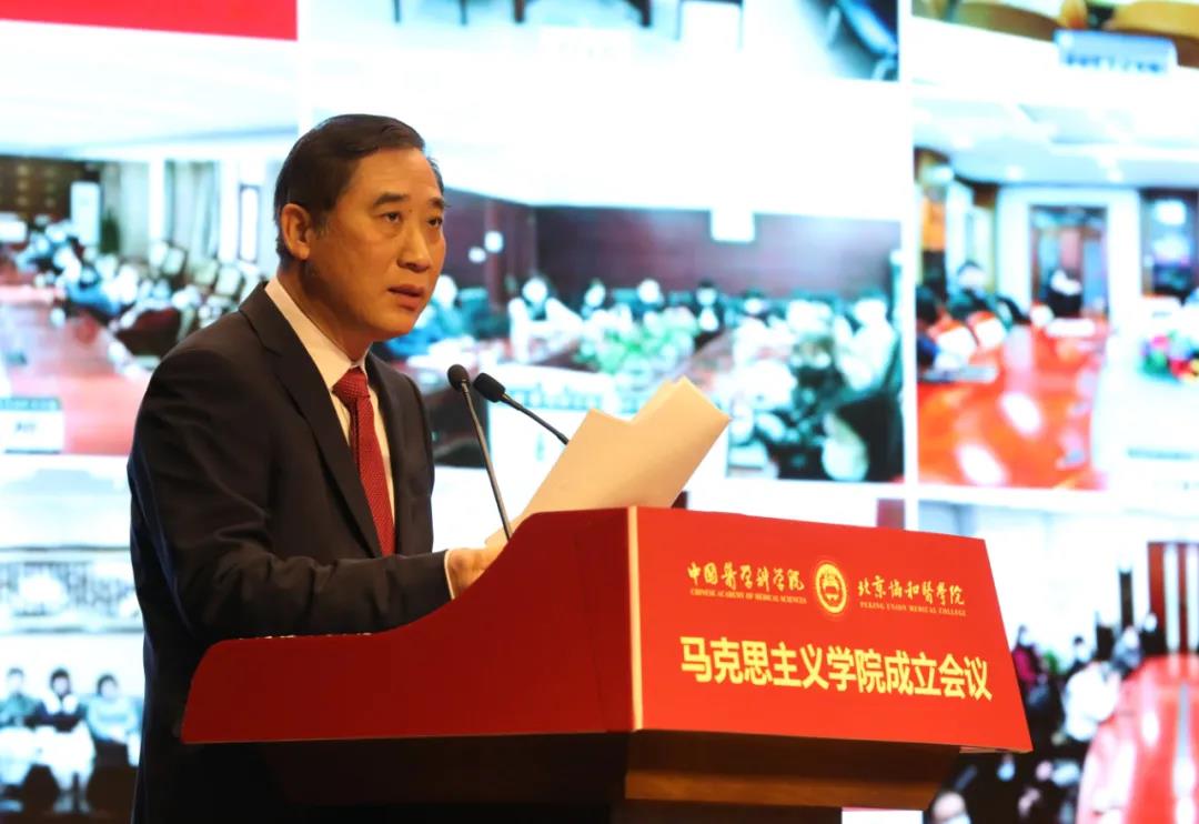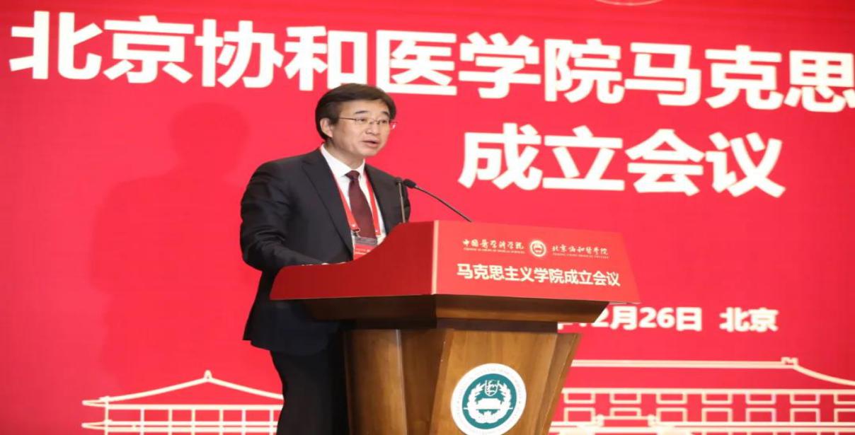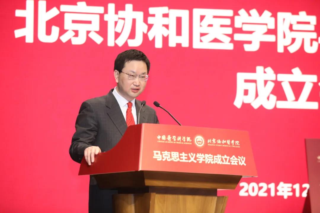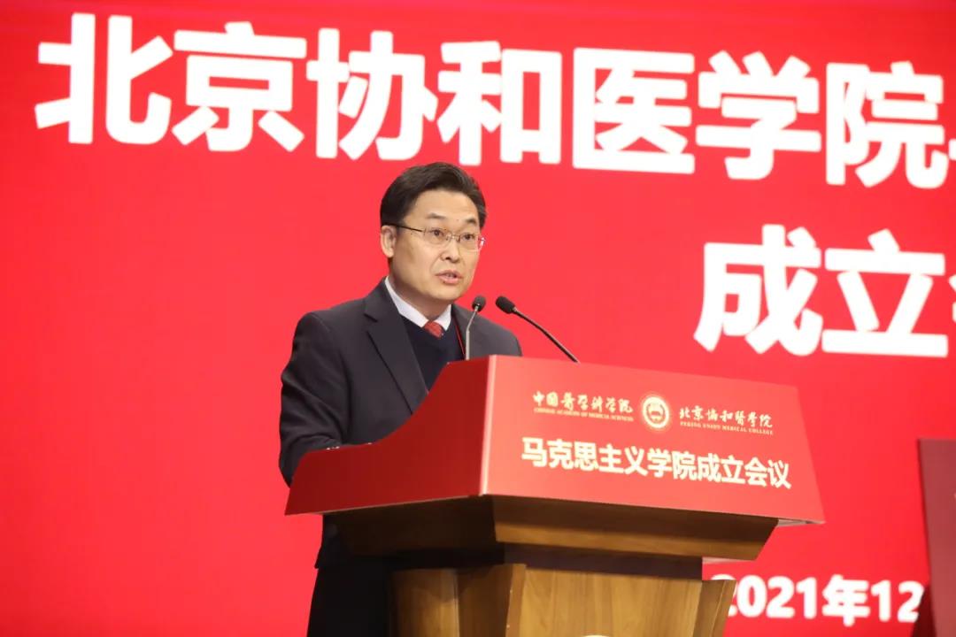 会上,国家卫生健康委直属机关党委常务副书记杨建立宣读国家卫生健康委党组书记、主任马晓伟批示。马晓伟指出,beat365手机版官网成立马克思主义学院是在新时代新征程上全面贯彻习近平新时代中国特色社会主义思想,落实《关于加强新时代马克思主义学院建设的意见》的重大举措。要认真学习贯彻党的十九届六中全会精神,坚持正确办学方向,坚持和加强党的全面领导,聚焦马克思主义中国化时代化最新成果的学习研究宣传,切实发挥思想政治理论课立德树人关键课程作用和马克思主义理论学科引领作用,大力弘扬和传承百年协和的优秀基因和精神内核。
