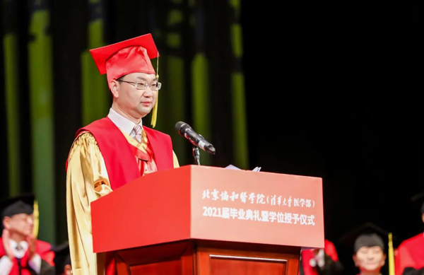 基础学院院长、血液病医院(血液学研究所)院所长程涛教授作为教师代表发言,为毕业生送上“学” “做” “人”三个字,勉励协和学子以实际行动践行“健康所系、性命相托”的誓言,肩负应有的社会责任,书写璀璨的人生篇章。