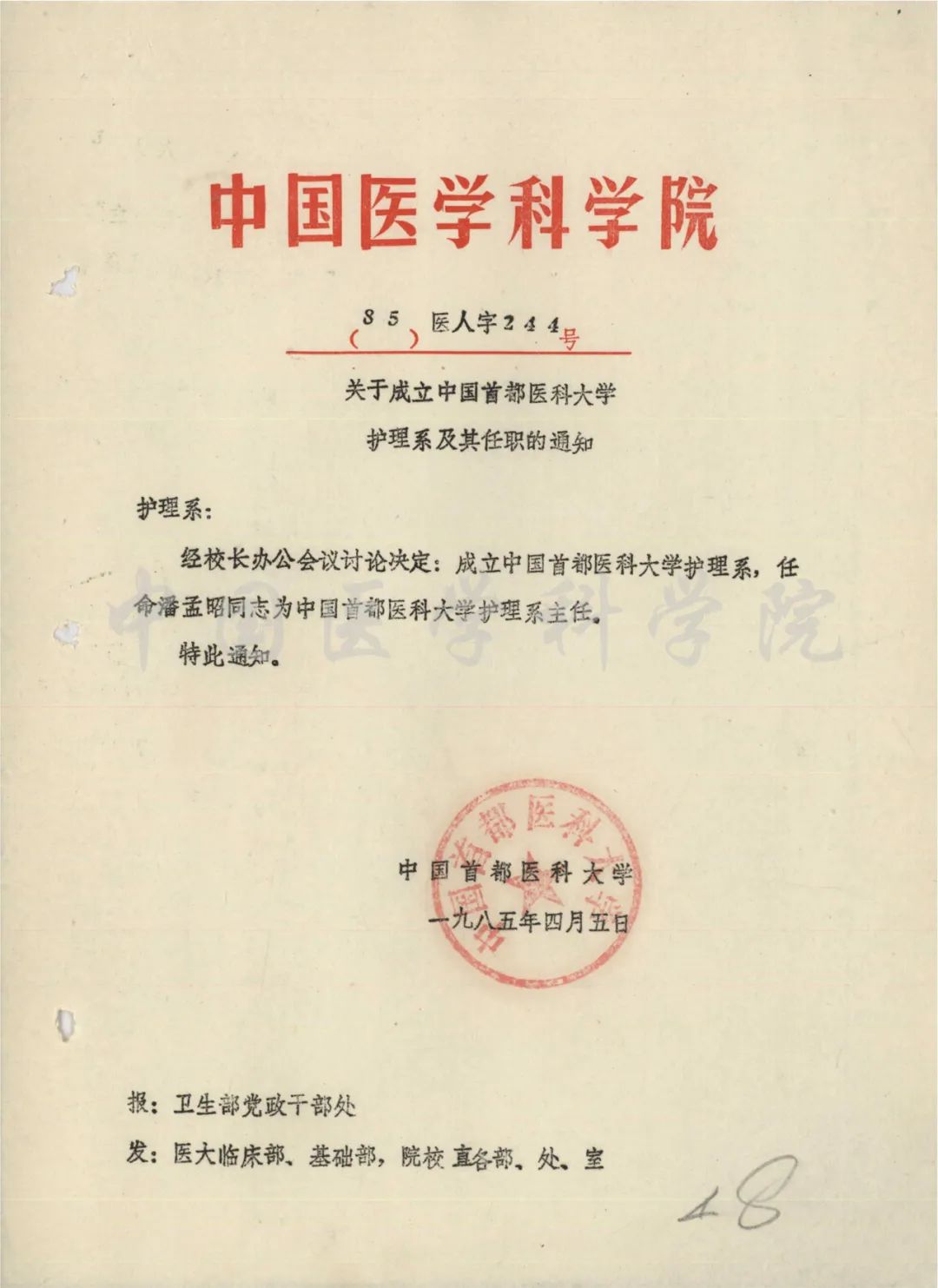 1.成立中国首都医科大学护理系的通知(8-YJ-1985-RSC-8-17-48)