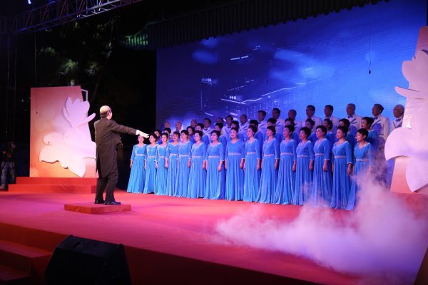 初冬的夜晚,凉风习习,露天舞台上医大学生雨燕合唱团、退休老同志协和音合唱团及京内各所院等近500名演员,用他们的演唱热情、高亢嘹亮的歌声伴着优美的舞姿驱赶着寒冷,热烈的演出场面,庞大的演员阵容和京外单位送来的祝福为庆典盛会献上一份饕餮大餐,感染了现场每一位观众。