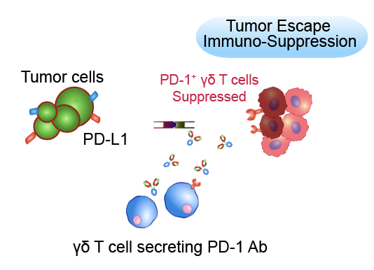 γδ T细胞是一类特殊的固有免疫T细胞,以主要组织相容性复合物非限制性的方式直接识别肿瘤相关抗原,对多种肿瘤产生快速、强大的细胞毒活性。然而,抑制性肿瘤微环境是阻碍其过继回输疗效的原因之一。程序性死亡受体1(PD-1)是经典的T细胞“免疫检查点”分子,PD-1抗体药物在临床上也显示对多种肿瘤有显著疗效;因此联合免疫疗法成为解决该问题的方向。