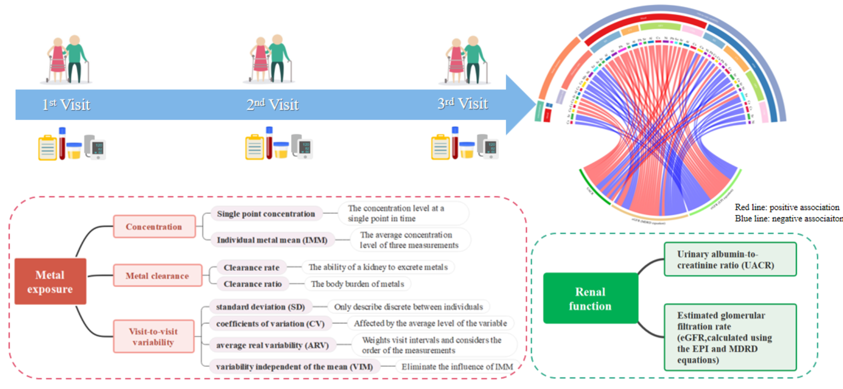 本研究首次提出了金属清除水平和金属访次间变异性指标,并发现这些新指标与肾功能下降相关。同时,揭示了真实世界暴露下,重金属混合暴露的健康效应。本研究有助于加深对重金属复合暴露所致慢性疾病的潜在病理生理学机制的理解,为国家环境重金属监测、管控、治理政策的制定提供科学依据。