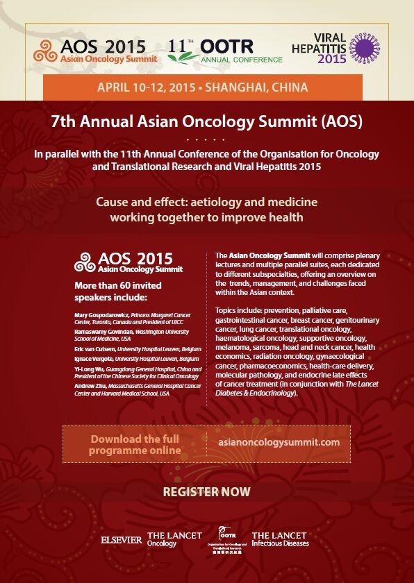 2015年4月10日至12日,第7届亚洲临床肿瘤峰会和第11届临床肿瘤、转化研究与肝病组织年会将在中国上海国际会展中心举办。病毒性肝炎专题峰会也将首次同时举行,此次峰会将聚集来自各个学科的专家,为共同研究、促进合作提供了独一无二的机会。