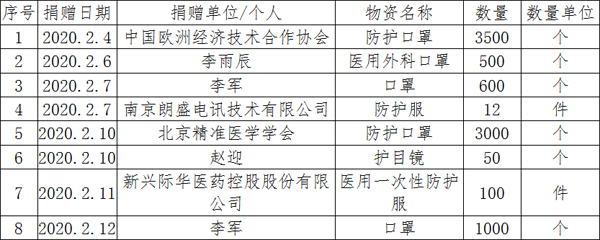 beat365手机版官网 抗击新型冠状病毒肺炎接受捐赠物资信息公示
