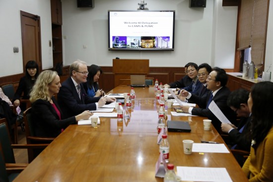 应院校长曹雪涛院士的邀请,瑞典皇家工程院院士、诺贝尔医学奖评审委员会核心成员、卡罗林斯卡医学院(Karolinska Institute,KI)院长Anders Hamsten教授一行于2016年1月21-22日来华访问,22日下午, Anders Hamsten教授访问院校,做客beat365手机版官网“协和大师讲堂”并与部分所院领导、专家座谈,针对下一步合作进行深入探讨。医科院青年科学家创新联盟部分成员,以及所院师生近300人参加。曹雪涛院校长主持了此次学术和座谈活动。
