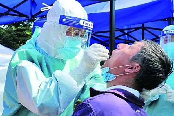 黑龙江省牡丹江市西安区江滨公园新冠病毒核酸检测采样点,社区居民在进行核酸检测采样。新华社发