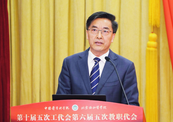 院校长王辰作题为《总结规划 融通学科 推进院校各项事业高质量创新发展》的报告,为院校发展绘制了清晰蓝图。报告明确院校“三步走” 阶段性发展目标,全面梳理2024年度工作成果。过去一年,院校在强化党的领导、文化传承创新、体系机制完善、人才队伍建设、拓展发展空间、融入国家战略等多方面成绩斐然。报告对2025年落实“四个面向”重点工作进行详细部署,涵盖党建引领、文化建设、规划制定、机制创新和资源拓展等关键领域,强调紧扣“文化、学科、管理、人才”要素,推动医学教育改革和创新体系建设,助力我国医学卫生健康事业发展。这不仅体现了院校在卫生健康领域的责任担当,更是积极响应国家医学发展战略的重要举措,为医学研究和教育现代化进程注入强劲动力。