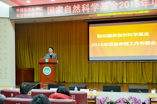 为做好2016年国家自然科学基金(以下简称“自然基金”)项目申报工作, 提高自然基金申报项目质量,1月22日上午,院校2016年自然基金申报工作布置会在新教学科研楼八楼报告厅召开。副院校长詹启敏院士,各所院科研工作主管领导、科技处负责人与自然基金项目管理人员以及科研人员等200余人参加了会议。会议由院校科技管理处处长王健伟主持。