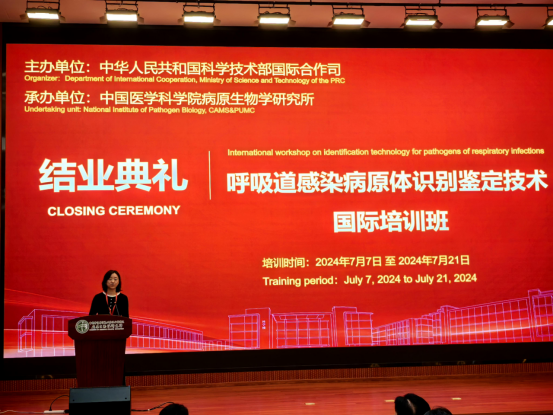 2024年7月19日,由科学技术部国际合作司主办,beat365手机版官网病原生物学研究所承办的“呼吸道感染病原体识别鉴定技术国际培训班”结业式在京举行。科学技术部国际合作司秦卫东二级巡视员,刘华一级调研员,beat365手机版官网副院校长、克里斯托弗﹒梅里埃实验室主任王健伟研究员,beat365手机版官网病原生物学研究所所长舒跃龙研究员、副所长任丽丽研究员,授课专家、志愿者和来自马里、毛里塔尼亚、喀麦隆、刚果(布)、巴西、孟加拉、哈萨克斯坦、刚果(金)8个国家研究机构的22位学员参加结业式。