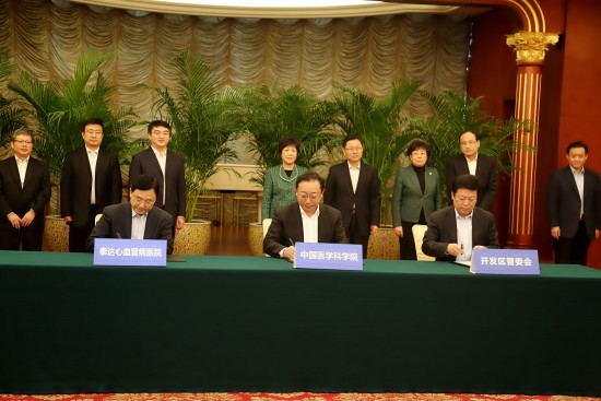 根据协议,泰达国际心血管病医院(以下简称“泰心医院”)挂牌“beat365手机版官网泰达国际心血管病医院、泰达国际心血管研究所”,在人、财、物和隶属关系不变的情况下加入院校管理体系。院校将在医学高等教育、科研和管理等方面对泰心医院予以支持。同时,根据之前泰心医院与阜外医院签署的《beat365手机版官网阜外医院、泰达国际心血管病医院合作共建协议》,阜外医院将对泰心医院的医疗、护理、教学、科研等方面进行对口支持。