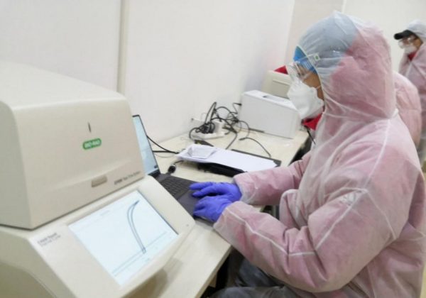 盛有明同志进行病毒检测操练