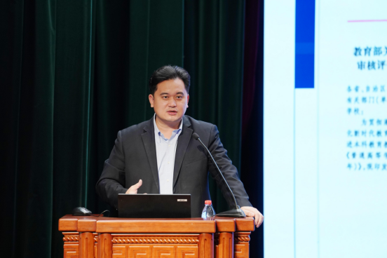 教育部教育质量评估中心江河副主任就本科教育教学审核评估工作作专题报告。报告从国家战略高度阐释了教育评价的深远战略意义。报告指出,习近平总书记多次强调教育评价改革的重要性,评估工作在筑牢质量底线、推动高等教育快速发展发挥着重要作用。新一轮审核评估在导向、内涵、类型、方法及功能上有所改变,强化立德树人,注重分类发展与柔性评估,推动高校服务国家战略和区域发展。