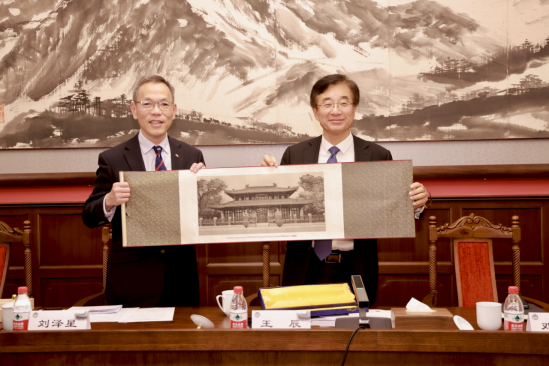 王辰院校长简要回顾了院校的发展历史以及近年“4+4”医学教育改革等重点举措和阶段性成果。他指出,期望以此次刘泽星院长一行来访为契机,加强两校深入合作的顶层设计,在战略合作备忘录的框架下,继续在医学教育改革、创新人才培养、科技创新协同等方面开展更多有益实践探索,将两校合作推向新高度。他建议,两校建立长期稳定的学术交流和互访机制,联合举办高层次学术会议,加强与港大医学院在医学教育体系建设,人工智能与大数据应用,群医学与公共卫生等领域合作,为国家培养更多高层次复合型创新医学人才。希望双方整合优势资源,充分发挥beat365手机版官网学术咨询委员会作用,围绕新时期面临的卫生健康领域挑战,联合撰写战略咨询报告,为国家卫生健康事业发展提供决策支撑和智库支持。