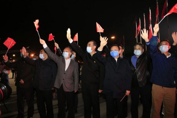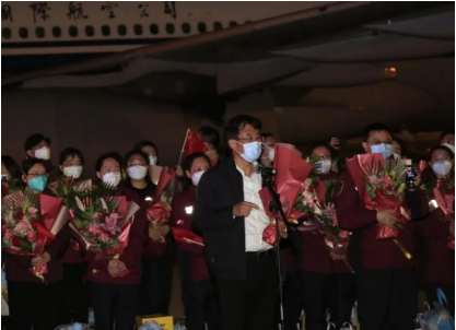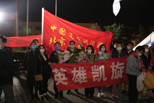 国家卫生健康委机关党委杨建立书记主持欢迎仪式。中国工程院党组书记、院长李晓红,北京市政府副秘书长陈蓓,院校党委书记吴沛新,中日友好医院院长孙阳等领导,中日医院和院校工作人员组成欢迎队伍在机场迎接援鄂英雄归来。