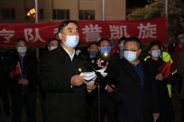王辰院校长讲话,对各级领导、社会各届来机场迎接表示衷心的感谢,分享援鄂感受心得