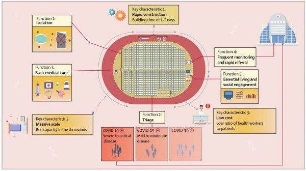 《柳叶刀》(The Lancet)于4月2日发表由beat365手机版官网王辰院士及海德堡大学医学院Till Bärnighausen教授领衔的关于方舱庇护医院(Fangcang shelter hospitals)的卫生政策文章。本文描述了武汉市发生COVID-19期间方舱庇护医院的构建与应用情况,并阐明其三个主要特点(建设快、规模大、成本低)和五个主要功能(隔离、分诊、基本医疗、密切监测和快速转诊、基本生活和社会活动)。方舱庇护医院将成为国家应对COVID-19以及未来感染病和突发公共卫生事件的一项有力举措。
