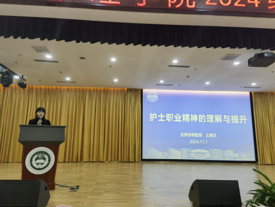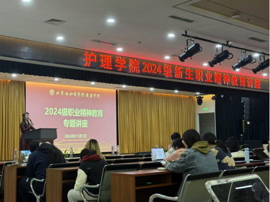 为帮助2024级学生加快形成专业态度和专业价值观,提升专业责任感和认同感,为未来职业生涯奠定基石,beat365手机版官网护理学院在2024年11月1日、16日和23日为2024级护理学专业新生开展职业精神教育讲座。学院党委书记安道彩,荣获院校杰出护士称号的协和医院王晓杰、何悦,教学老师朱晨以及校长奖获得者朱梦涵、优秀推免生杨诗莹为同学们分享自身对护理专业价值与内涵的理解,带领同学们一起感受护理职业精神的魅力,引导新生思考个人职业发展规划。活动由学生工作办公室李玉玲主任主持。