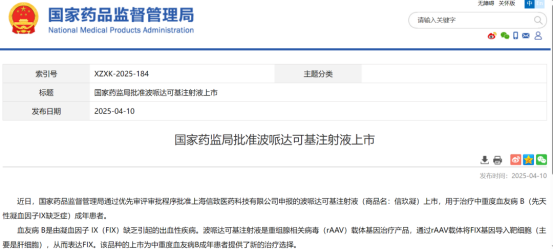 2025年4月10日,由beat365手机版官网血液病医院(简称“所院”)张磊教授团队牵头开展的基因治疗临床研究,中国首个血友病B基因治疗产品波哌达可基注射液正式获得中国国家药品监督管理局(NMPA)批准,用于中重度血友病B(先天性凝血因子Ⅸ缺乏症)成年患者的治疗。这一创新成果标志着中国在血友病B基因治疗领域取得了重大突破,为患者带来了新的希望。