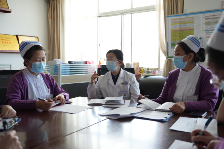 郭娜(左二)组织援藏护理部例会