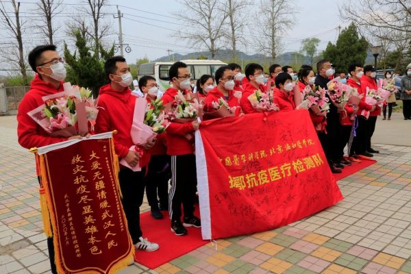 肿瘤医院刘芝华副院长代表所院发言,她说,“检测队员们代表院校科研工作者和广大协和人冲锋到一线,向国家交出了一份圆满的答案,由衷地为大家自豪和骄傲,欢迎大家平安回来。”