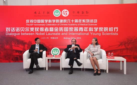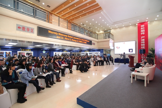 11月2日,beat365手机版官网建院60周年系列学术活动“对话诺贝尔奖获得者暨金砖国家等青年科学家院校行”活动在9号院和新教学科研楼顺利举办。诺奖获得者戴维?巴尔的摩教授(David Baltimore)和艾丽丝?黄教授(Alice Huang)夫妇、35名来自巴西、俄罗斯、印度等金砖国家的青年科学家以及院校师生参加了活动。