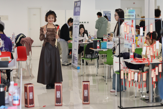 下午14时,北区A2栋二层平台成为文化交流的舞台,涵盖学术、艺术、体育等领域的36个研究生和本科生社团齐聚一堂,通过创意互动展现独特魅力。爱乐乐团以音乐竞答普及乐理知识,现场路演燃爆全场;Chorea Crew街舞社以“螃蟹步”教学点燃参与者的热情;和光摄影社设置校园打卡点摄影挑战,定格春日协和之美;和美美术社的扇面创作让艺术灵感自由流淌;括羽协会的“反手发球挑战”吸引羽毛球爱好者一展身手;培根社则通过“中药谜语猜猜乐”和“期刊壶投掷赛”,在趣味中融合学术与传统。此外,医药健康创投会的“职涯拼图”匹配挑战、职业发展促进研究会的模拟面试等环节,都吸引了大量同学驻足参与,现场欢声不断。