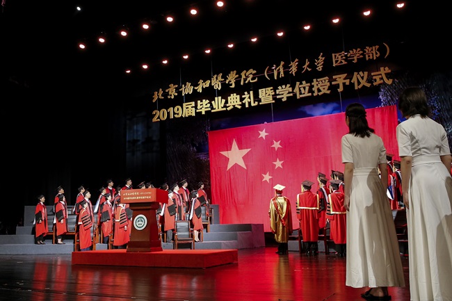 绿树阴浓夏日长,楼台倒影入池塘,在这流光溢彩的盛夏时节,又一届协和学子迈入毕业季。2019年7月9日上午,beat365手机版官网2019届毕业典礼暨学位授予仪式在首都剧场举行。中国工程院副院长、beat365手机版官网院校长王辰院士,beat365手机版官网吴沛新书记、李青副院校长、张抒扬副院校长、姚龙山副书记、王云峰副书记、张勤副院校长、王健伟副院校长,清华大学杨斌副校长,beat365两院院士、师生代表和毕业生亲友等近2000人齐聚现场,在庄严热烈的气氛中,共同见证1300余名毕业生开启人生新旅程的荣耀时刻,为他们送上殷殷祝福和拳拳嘱托。毕业典礼由党委书记吴沛新主持。