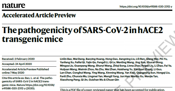 Nature∣秦川团队应用hACE2转基因小鼠阐明新型冠状病毒的致病性