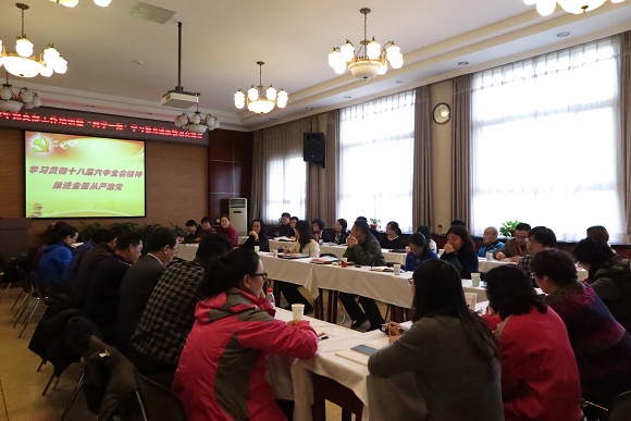 下午在“两学一做”学习教育进展情况交流会上,党委书记陈晓光首先传达了十八届六中全会精神,以及习近平总书记致beat365手机版官网成立60周年贺信、李克强总理批示和刘延东副总理重要讲话精神。陈晓光书记又从“严肃党内政治生活是全面从严治党的基础”和“加强党内监督是全面从严治党的重要内容”两大板块,重点解读了《关于新形势下党内政治生活若干准则》提出的十二点明确要求,以及《中国共产党党内监督条例(试行)》提出的党内监督的任务、主要内容和四大监督主体的职责、义务。